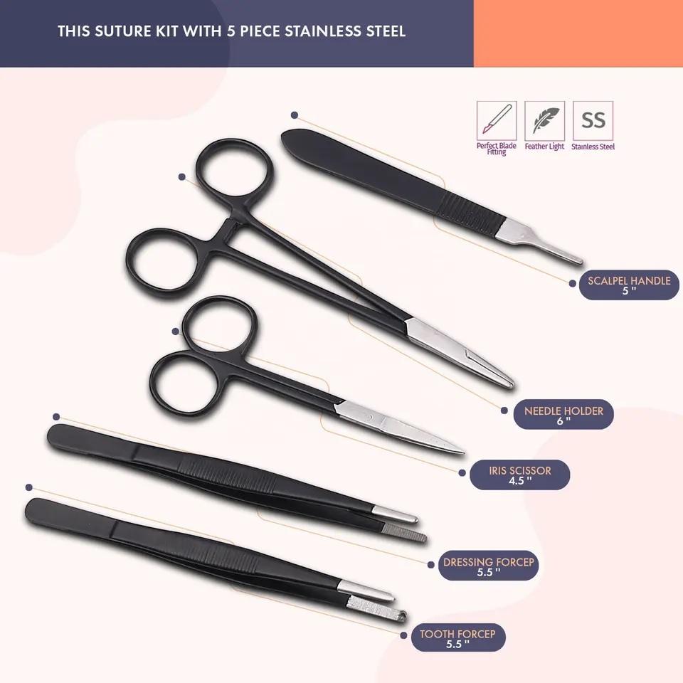 ชุดฝึกเย็บสีดำสำหรับนักเรียนแพทย์-สแตนเลสเย็บแผลด้วยตนเองการฝึกอบรมก่อนตัดแผลปฐมพยาบาลฉุกเฉิน