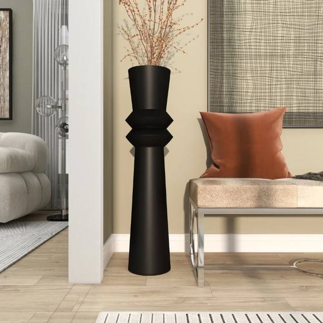 แจกันโลหะตกแต่งพื้นทรงสูงสีดำสำหรับตกแต่งแจกันหรือตกแต่งสไตล์อาร์ตเดคโคทรงสูงสีดำ