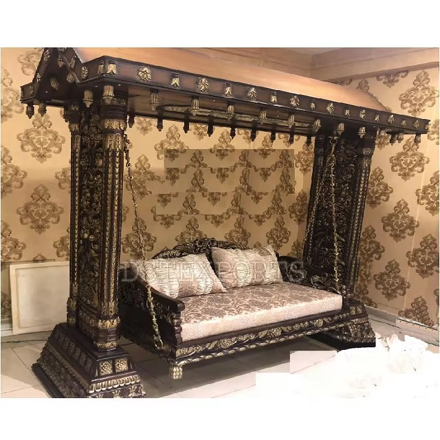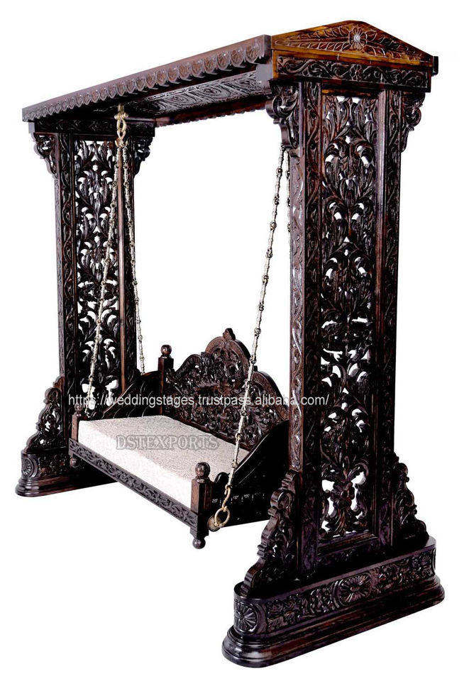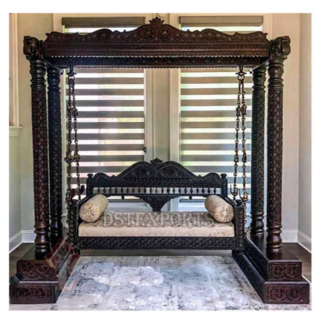 Black Teak Wood Carved Swing for Home DST Exports Custom Size Adjustable Hot Selling Living Room Traditional Jhula Manufacturers