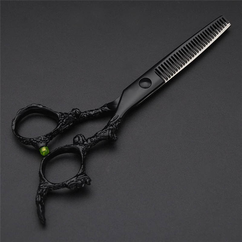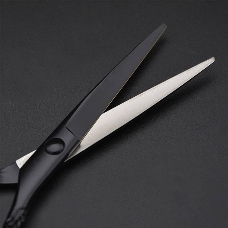 กรรไกรตัดผมสีดำ 6.0 นิ้ว สแตนเลสสตีล ปลายทู่ ด้ามยาว สำหรับตัดผมเสริมสวย