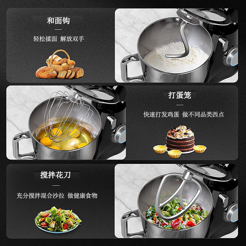 เครื่องผสมอาหารแบบหัวเอียงสีดำ ความจุ 5 ลิตร 10 ลิตร เครื่องผสมอาหารแบบตั้งโต๊ะไฟฟ้า พร้อมหัวตีแบบตะกร้อและหัวตีแป้ง สำหรับทำขนมและทำอาหาร