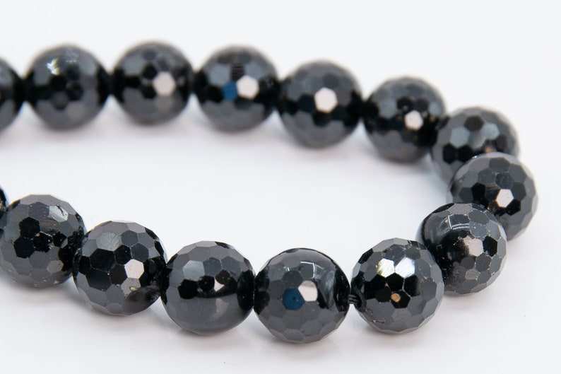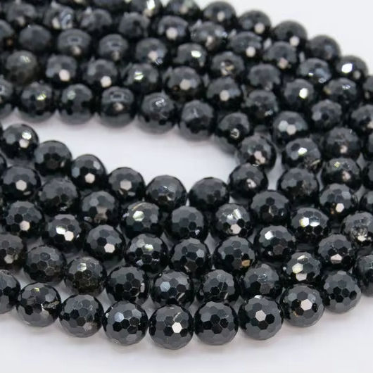 ลูกปัดทัวร์มาลีนสีดำ แท้จากธรรมชาติ ทรงกลมเหลี่ยมเล็กๆ ขนาด 15 นิ้ว 7.5 นิ้ว ขายส่งจำนวนมาก