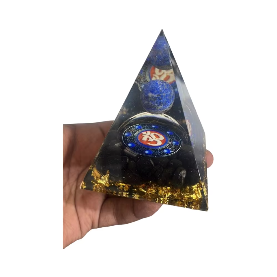 พีระมิดพลอยแบล็คทัวร์มาลีนพร้อมสัญลักษณ์โอม | การป้องกันที่ทรงพลัง การป้องกันคลื่นแม่เหล็กไฟฟ้า การต่อสายดิน พลังงาน ตกแต่งเชิงจิตวิญญาณ พกพาสะดวก คุณภาพสูง