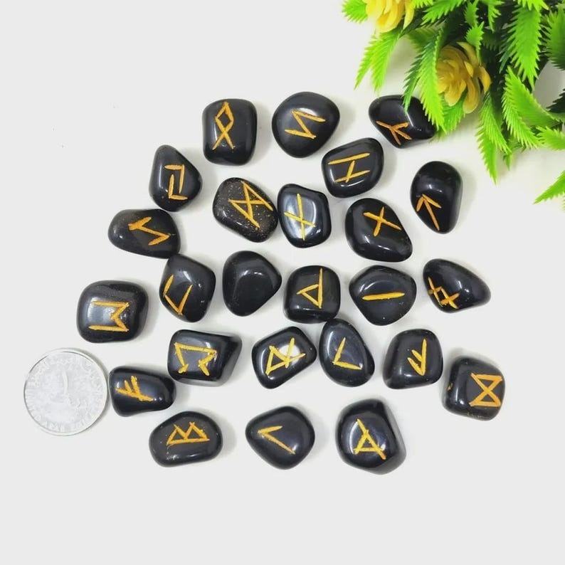 ชุดรูนแบล็คทัวร์มาลีน คริสตัลฟูทาร์ก สไตล์เฟิงชุ่ย สลักลายพรีเมียม ทำด้วยมือ หินอาเกตมุนตาฮะสำหรับบำบัดรักษา