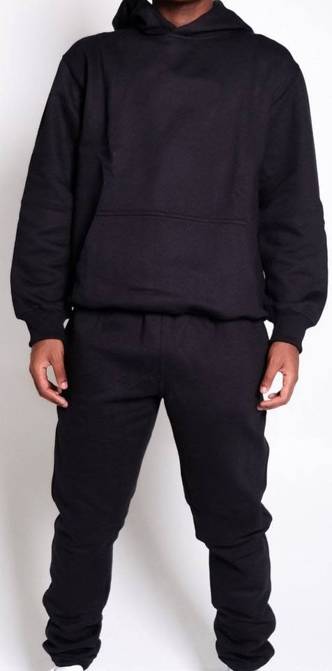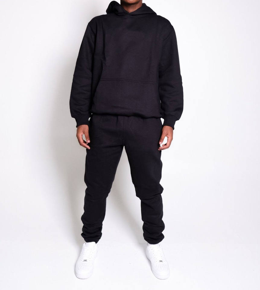 ชุดวอร์มสีดำสำหรับผู้ชายชุดออกกำลังกายกางเกงวอร์มใส่ออกกำลังกายผ้าคอตตอนผ้าฟลีซสีดำออกแบบโลโก้ได้ตามที่ต้องการ