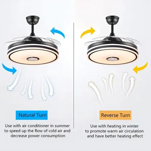 พัดลมใบพัดขนาด50ซม. โปร่งใสสีดำพร้อมลำโพงบลูทูธและรีโมทคอนโทรลวัสดุพลาสติกพัดลมเพดาน60Hz