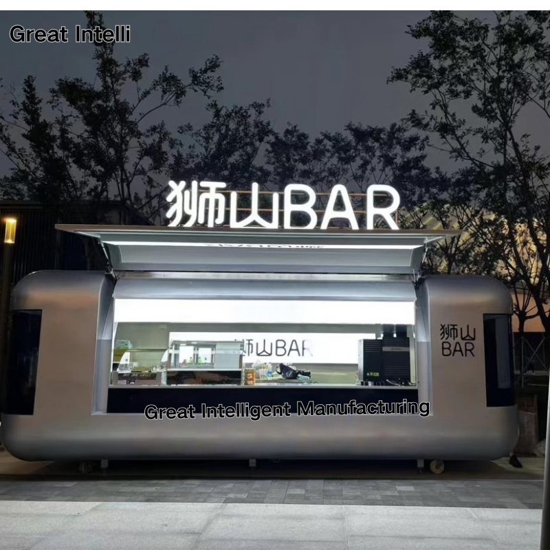 รถบรรทุกสีดำพร้อมอุปกรณ์เต็มรูปแบบตู้พิซซ่าห้องครัวเคลื่อนที่ได้ขายรถพ่วงขายอาหารว่างสำหรับร้านอาหาร
