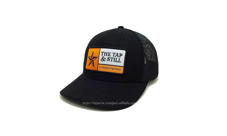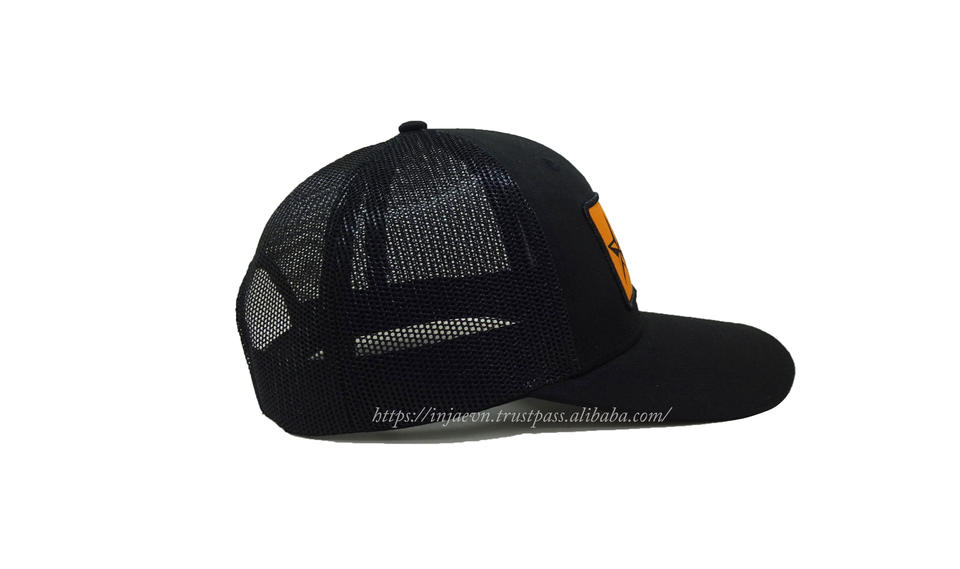หมวกทรักเกอร์สีดำหมวกแฟชั่นผู้ใหญ่ Gorra 6แผงด้านหลังตาข่ายหมวกกีฬาที่กำหนดเองทอปักโลโก้ Headwear injae Vina