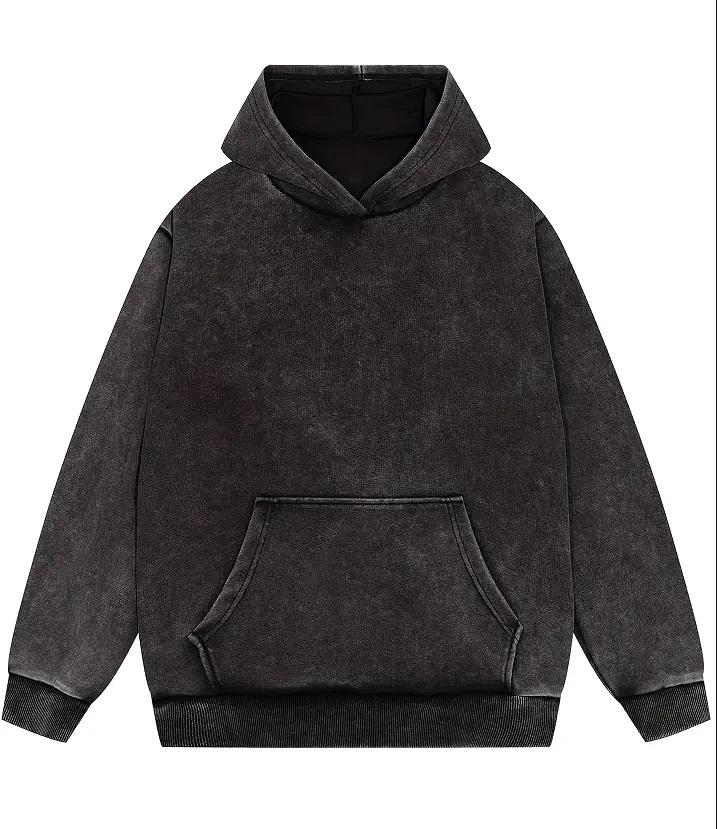 เสื้อฮู้ดผ้าฝ้ายสีดำสไตล์วินเทจสำหรับผู้ชายเสื้อสเวตเชิ้ตแบบสวมหัวผ้าโอเวอร์ไซส์ผ้าคอตตอนขนาดใหญ่ผ้า100% ซักได้ออกแบบด้วยพลอยเทียมสำหรับ2026ในฤดูหนาว