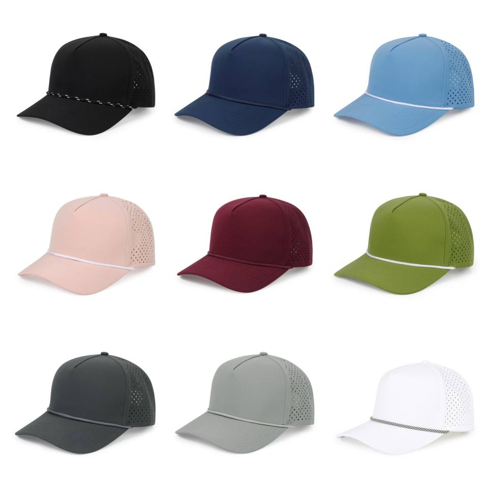 หมวกกอล์ฟไนลอนกันน้ำสีดำสไตล์วินเทจ ตาข่ายระบายอากาศ ปักลาย 3 มิติ สำหรับสโมสรฟุตบอล แบบ 5 ชิ้น สีทองแดง