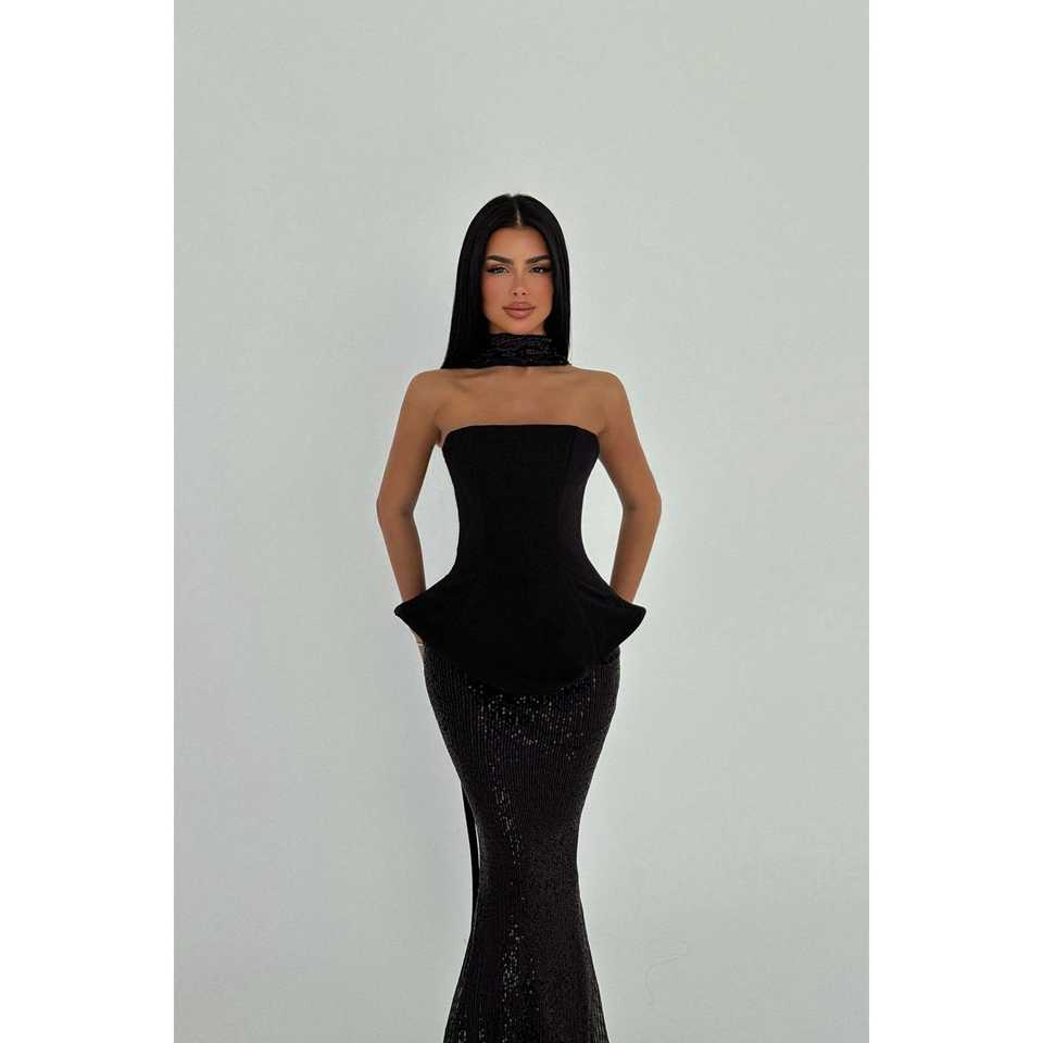 Black Viona Floor-Length Ball Gown Set Sequined Evening & Banquet Dress with Long Styles for Graduation Parties