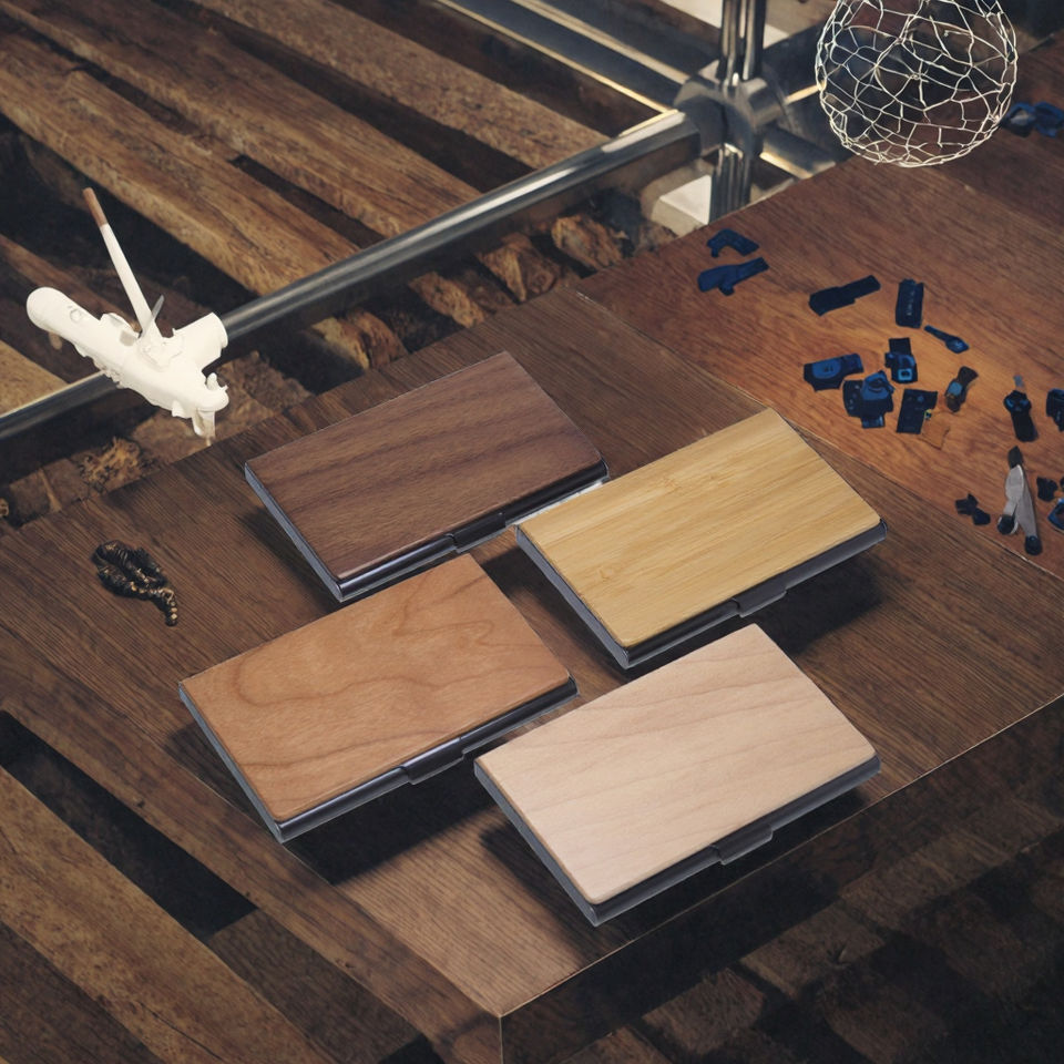กระเป๋าใส่นามบัตรทำจากไม้วอลนัทสีดำแบบยั่งยืนทำจากสเตนเลสอุปกรณ์เสริมที่หรูหรา