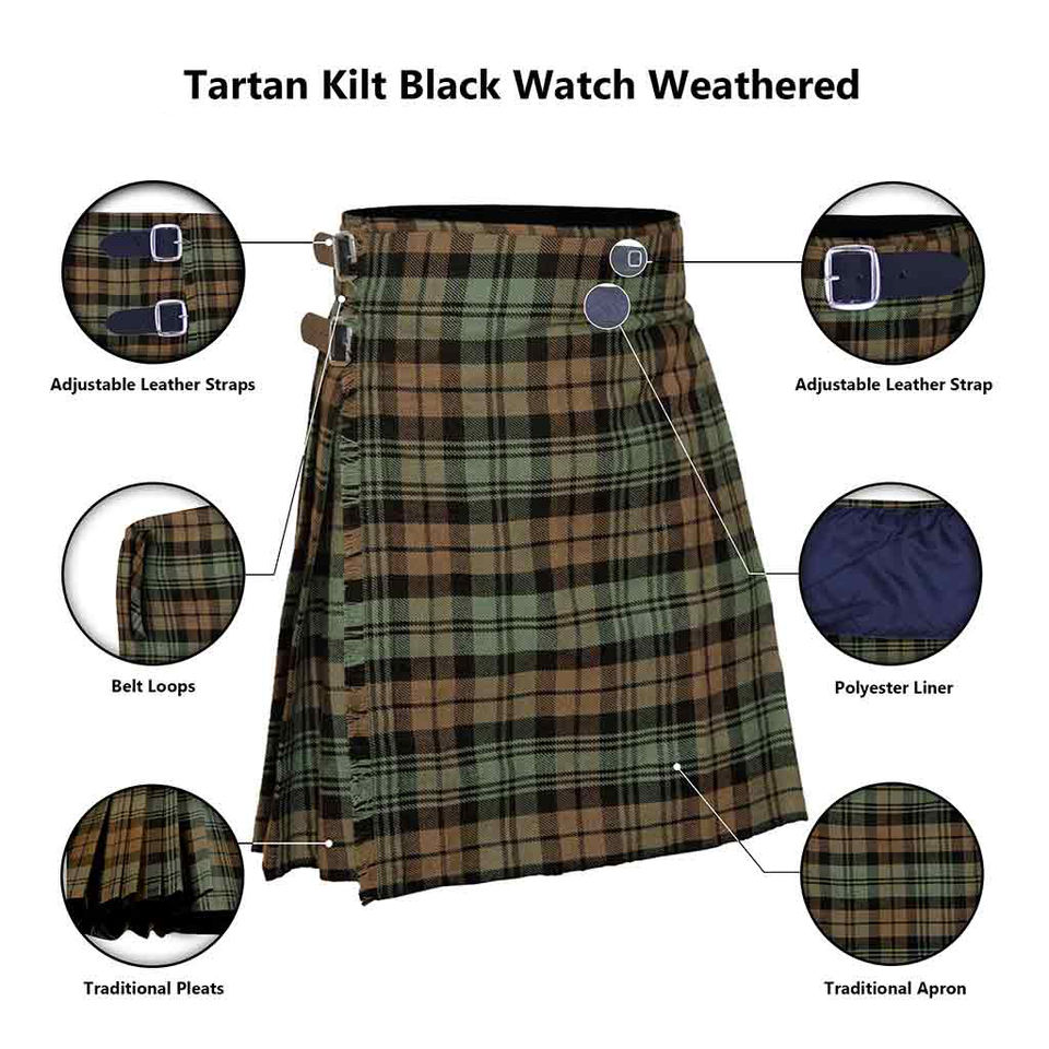 นาฬิกาสีดำ weathered Tartan 8หลาผ้าอะคริลิค erhu Kilt ผู้ชายกำหนดขนาดเองมีลายตารางสก็อตแบบดั้งเดิมขายส่ง