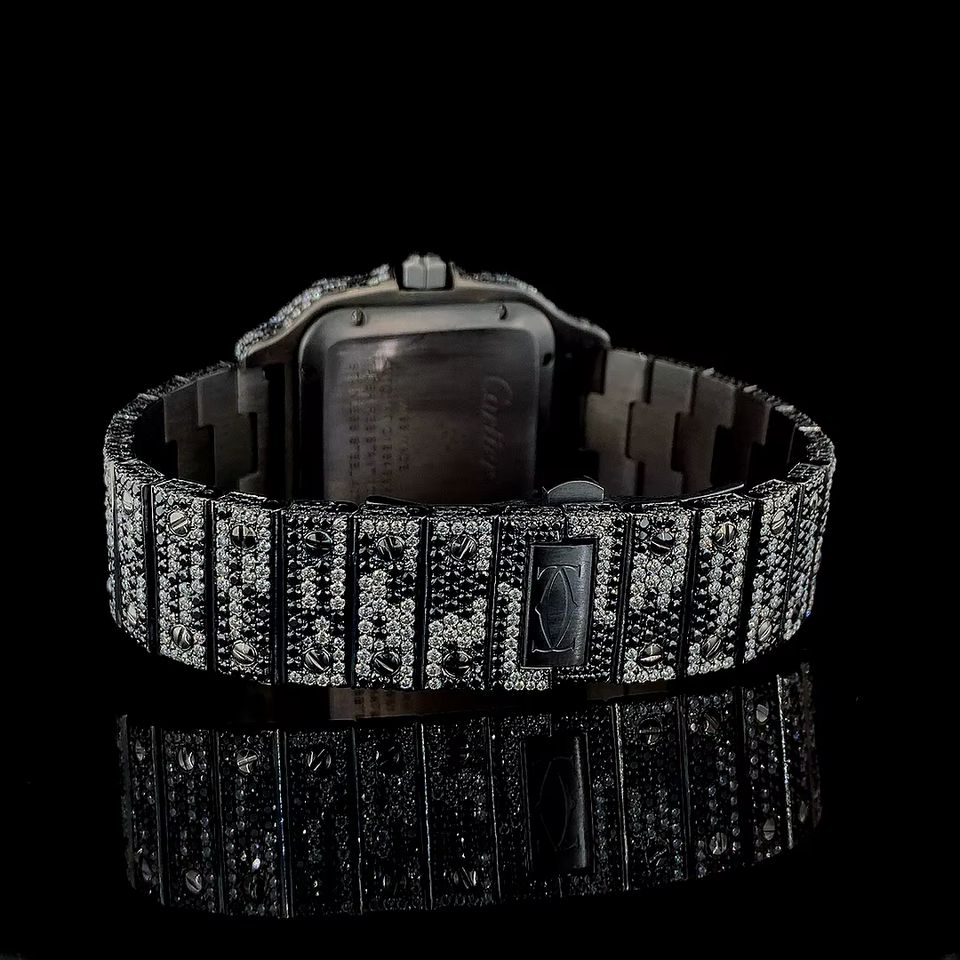Black White Band VVS Round Customized Moissanite Diamond Men Wrist Watch, Stainless Steel Square Dial Automatic Watch For Men