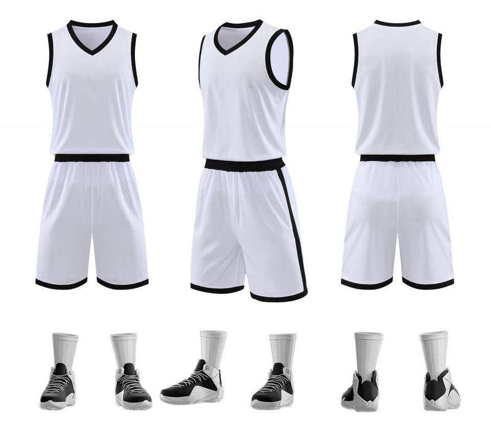 ชุดบาสเก็ตบอลสีดำขาว เสื้อเจอร์ซีย์ กางเกงขาสั้น เสื้อกล้ามคอวี แบบเรียบ สำหรับทีมกีฬา ฝึกซ้อม ออกกำลังกาย สั่งซื้อจำนวนมาก