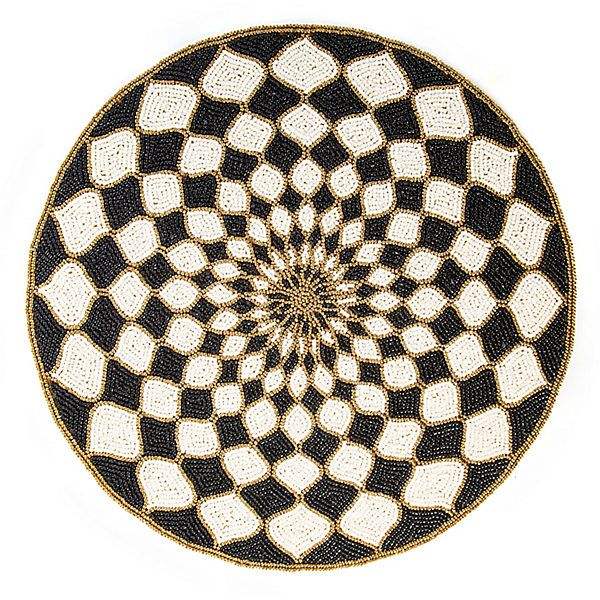 Black White Checkerboard Glass Beaded Eco-Friendly Customizable R10 Handicraft BP 16 Placemat Optical Illusion Pattern