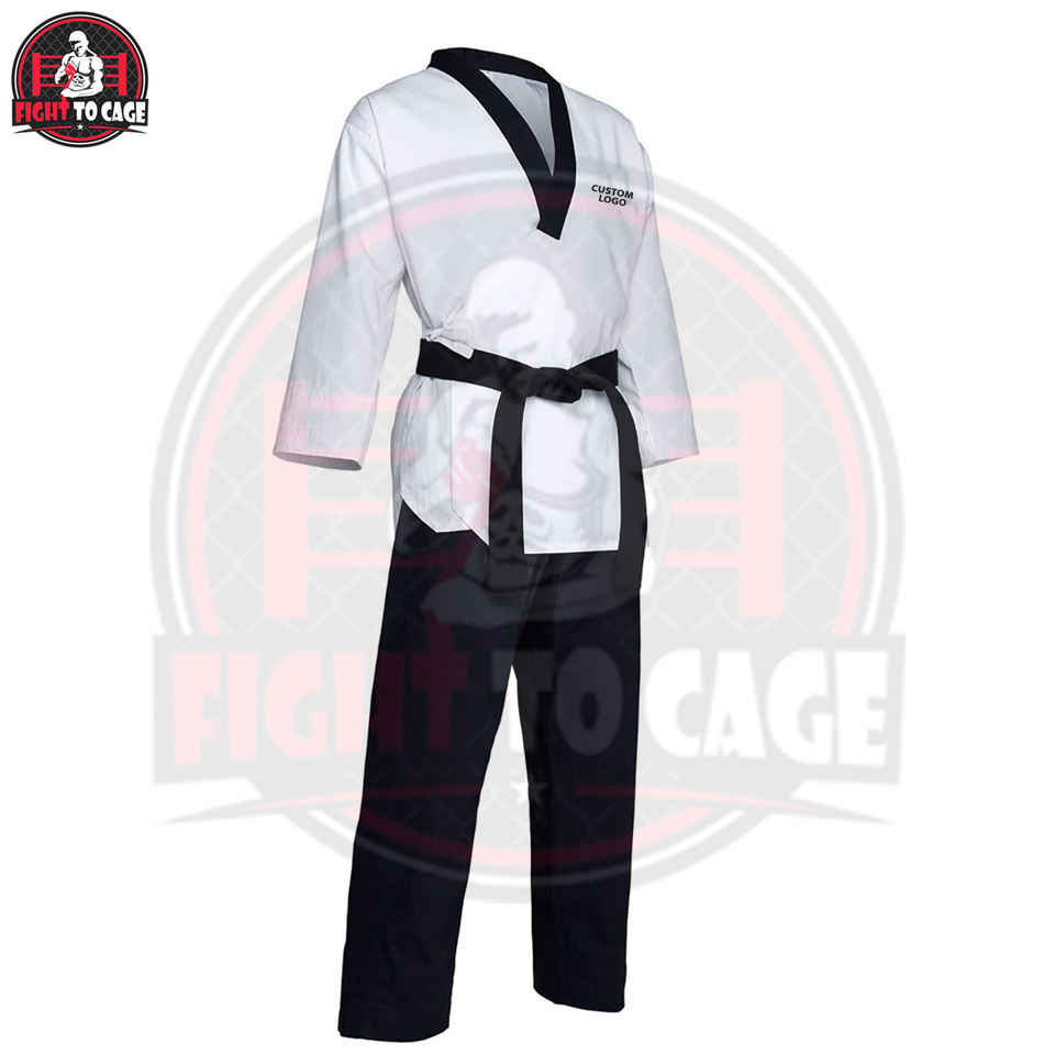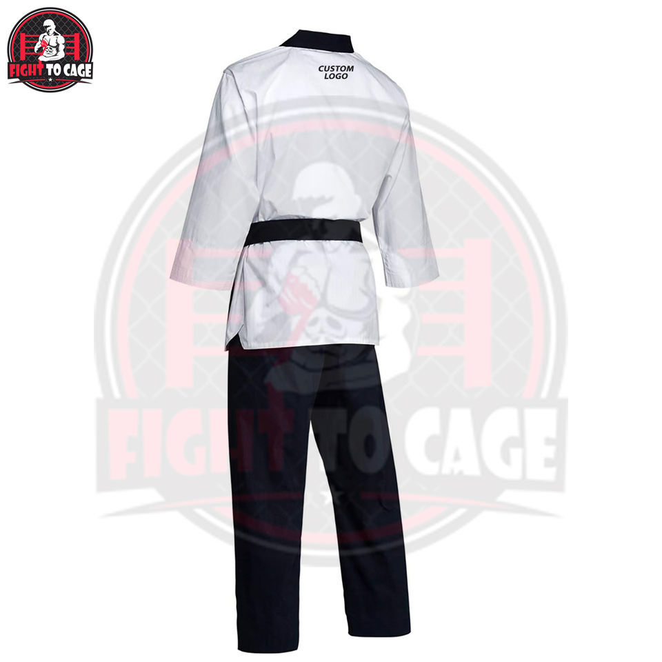 ชุดเทควันโดสีดำขาวตัดกันสวยงาม ขายดี ไม่มีโลโก้ คุณภาพพรีเมียม สำหรับศิลปะการต่อสู้