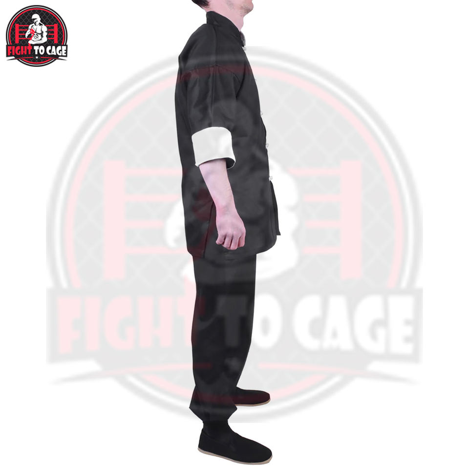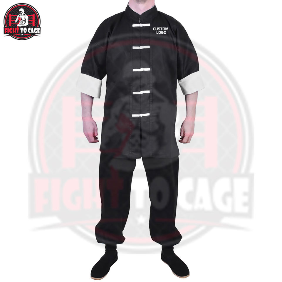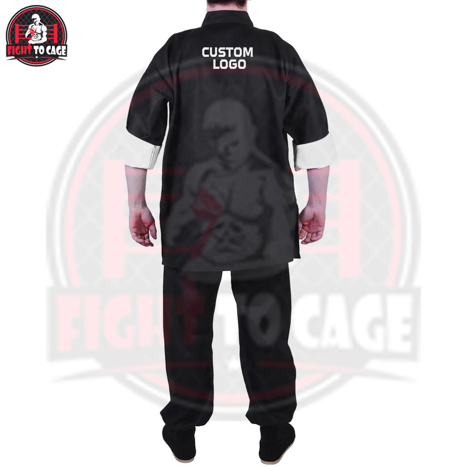 ด้านหน้าศิลปะการต่อสู้กังฟูทำจากโพลีเอสเตอร์ระบายอากาศได้ดีสีขาวดำ