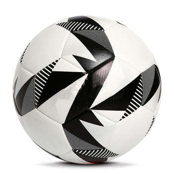 ลูกฟุตบอลปักลายเรขาคณิตสีดำสีขาวขนาด5 PU เครื่องฝึกฟุตบอลหนัง