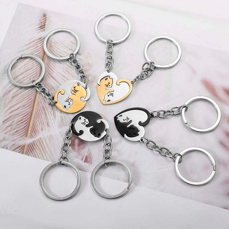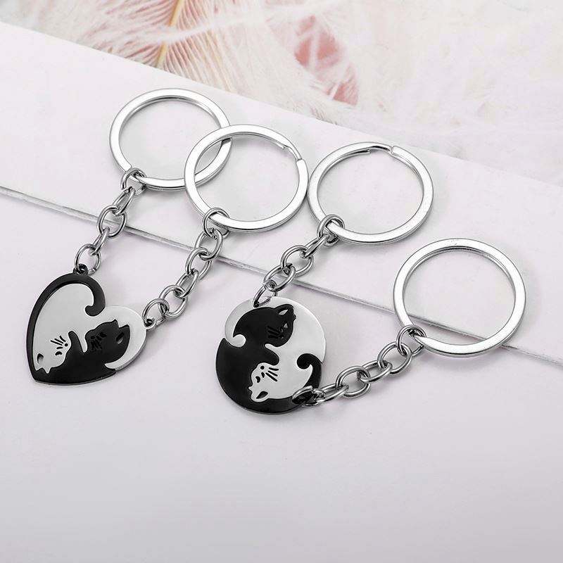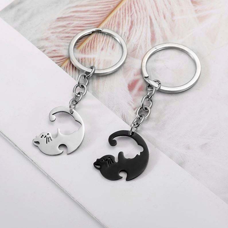 พวงกุญแจสแตนเลสสตีลรูปแมวสีดำขาว ลายรัก สำหรับผู้ชาย ผู้หญิง คู่รัก ของขวัญวันแต่งงาน วันเกิด สำหรับชุดผ้าขนหนูอาบน้ำ