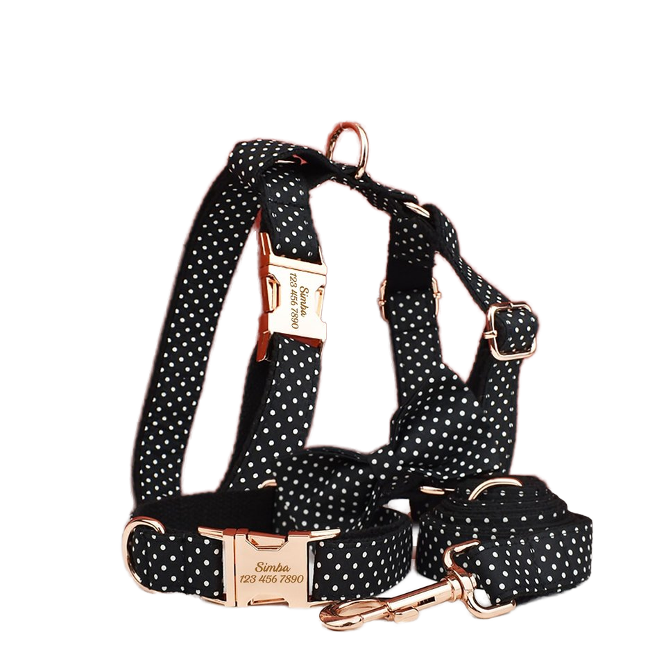 สายจูงสุนัขไนล่อนบุนวมสีดำสีขาวทึบปลอกคอสุนัขแบบกำหนดเองพร้อมชื่อสายผูกโบว์สำหรับลูกสุนัขตัวเมียสุนัขตัวเล็กถึงตัวใหญ่ของขวัญสัตว์เลี้ยง