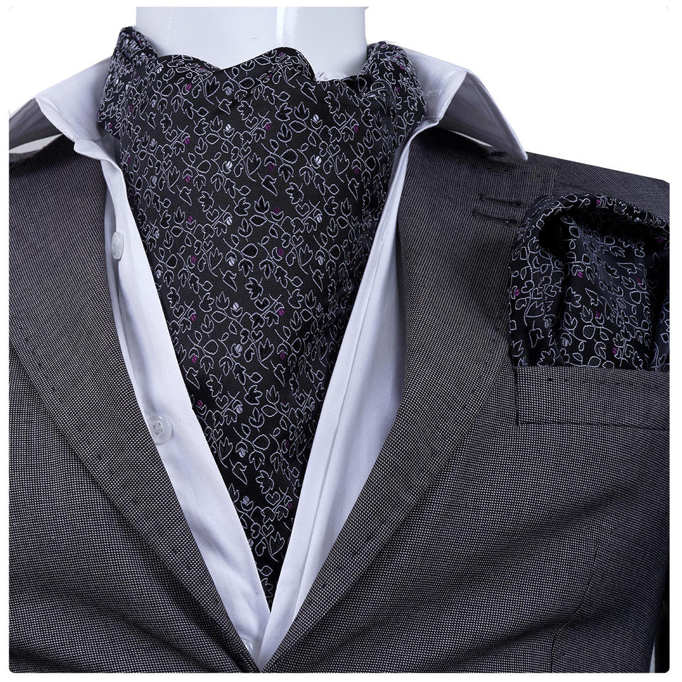ชุดผ้าเช็ดหน้าลายดอกไม้สีดำ ขาว ม่วง พร้อมกระดุมติดเสื้อแบบเดี่ยว ผลิตจากผ้าโพลีเอสเตอร์ 100% แบบวอร์สเตด ซักได้