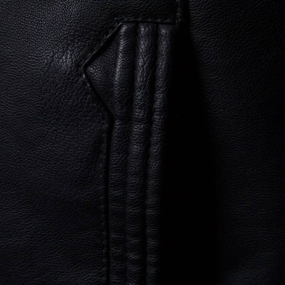 แจ็คเก็ตหนังสีดำสำหรับผู้ชาย ดีไซน์ทันสมัย ระบายอากาศได้ดี สไตล์ไฮสตรีท พร้อมโลโก้แบบกำหนดเอง ผ้าแคนวาส ซิป