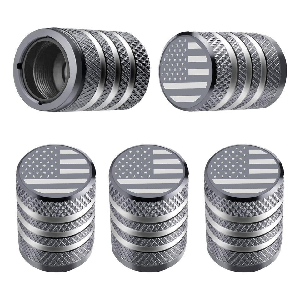 ฝาครอบวาล์วยางอะลูมิเนียมสีดำลายธงชาติอเมริกัน พร้อมซับในพลาสติก ป้องกันการกัดกร่อน ป้องกันการรั่วซึม