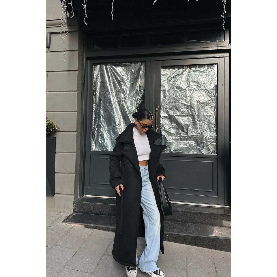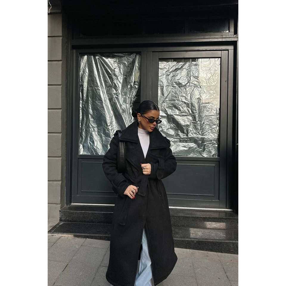 เสื้อโค้ทขนสัตว์สีดำสำหรับผู้หญิง ติดกระดุมเม็ดเดียว มีกระเป๋า ระบายอากาศได้ กันน้ำ เสื้อโค้ทยาวสำหรับฤดูใบไม้ร่วง ไซส์ XS