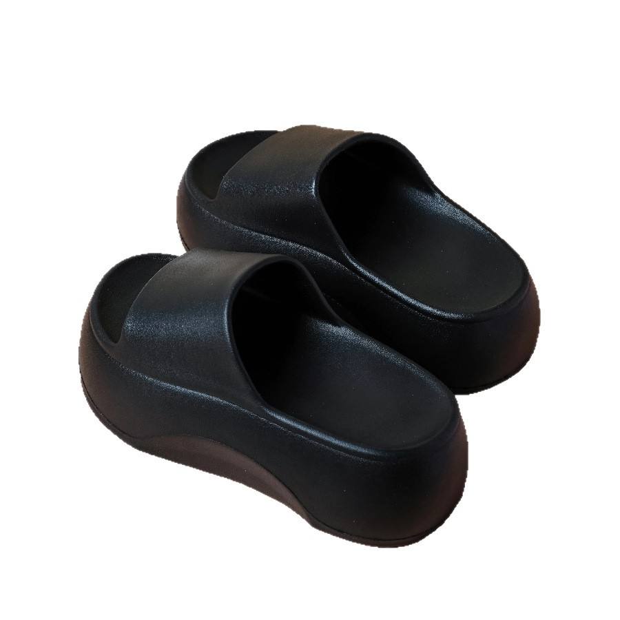 รองเท้าแตะแบบสวมสำหรับผู้หญิงสีดำ เพิ่มความสูง ใส่สบายๆ สีพื้น รองเท้าชายหาด สไตล์สายเดี่ยว รุ่น BY-1505BSK