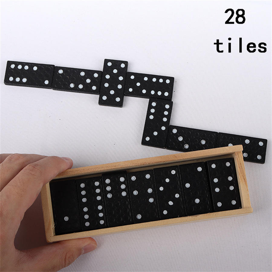 Black Wooden Small Dominoes Set 28-Piece in Gift Box Educational Classic Tabletop Game for Kids & Adults
