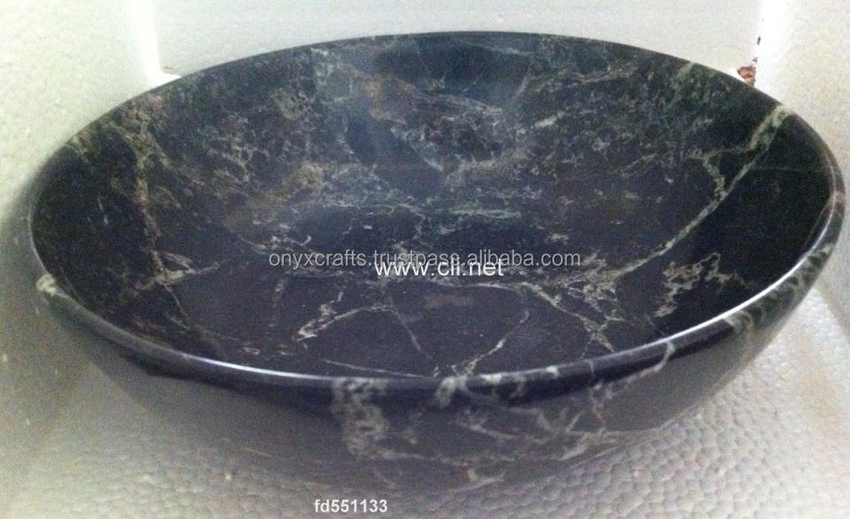 ชามผลไม้หินอ่อนลายม้าลายสีดำแกะสลักด้วยมือ ขัดเงา หินธรรมชาติ ทรงกลม จานเสิร์ฟหรูหรา ของตกแต่งโต๊ะอาหารที่บ้าน