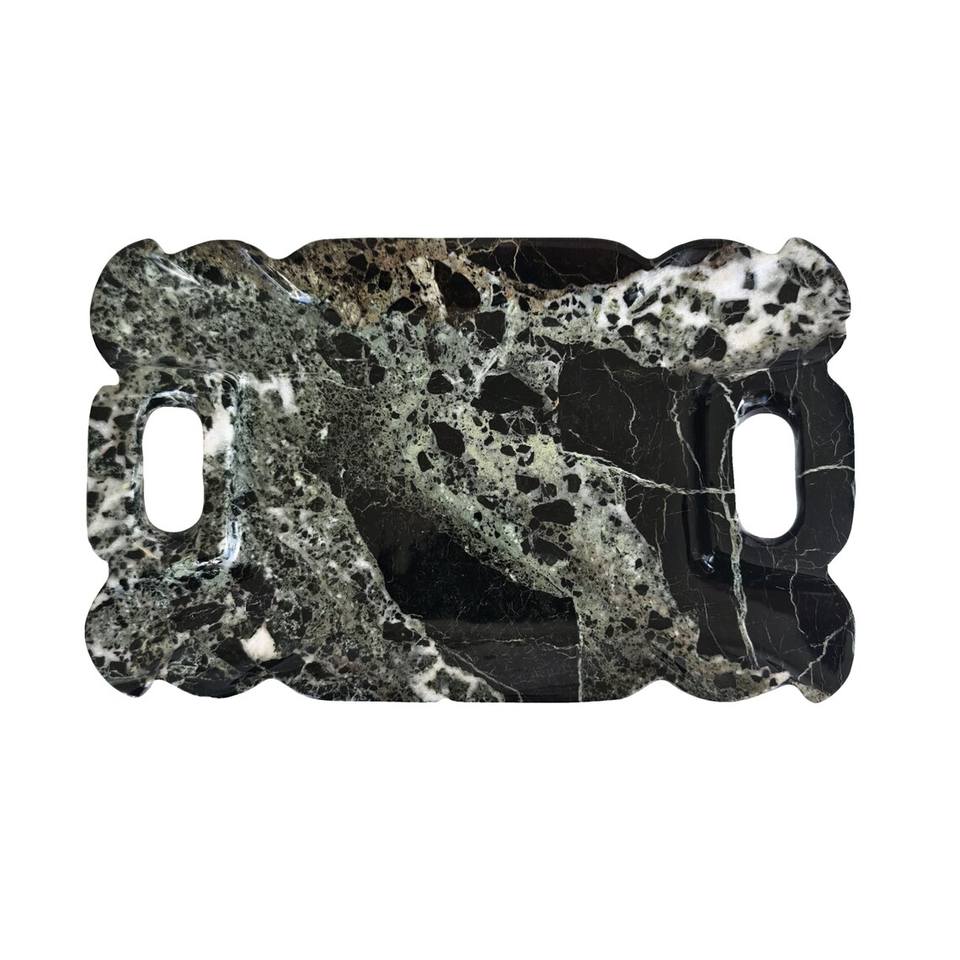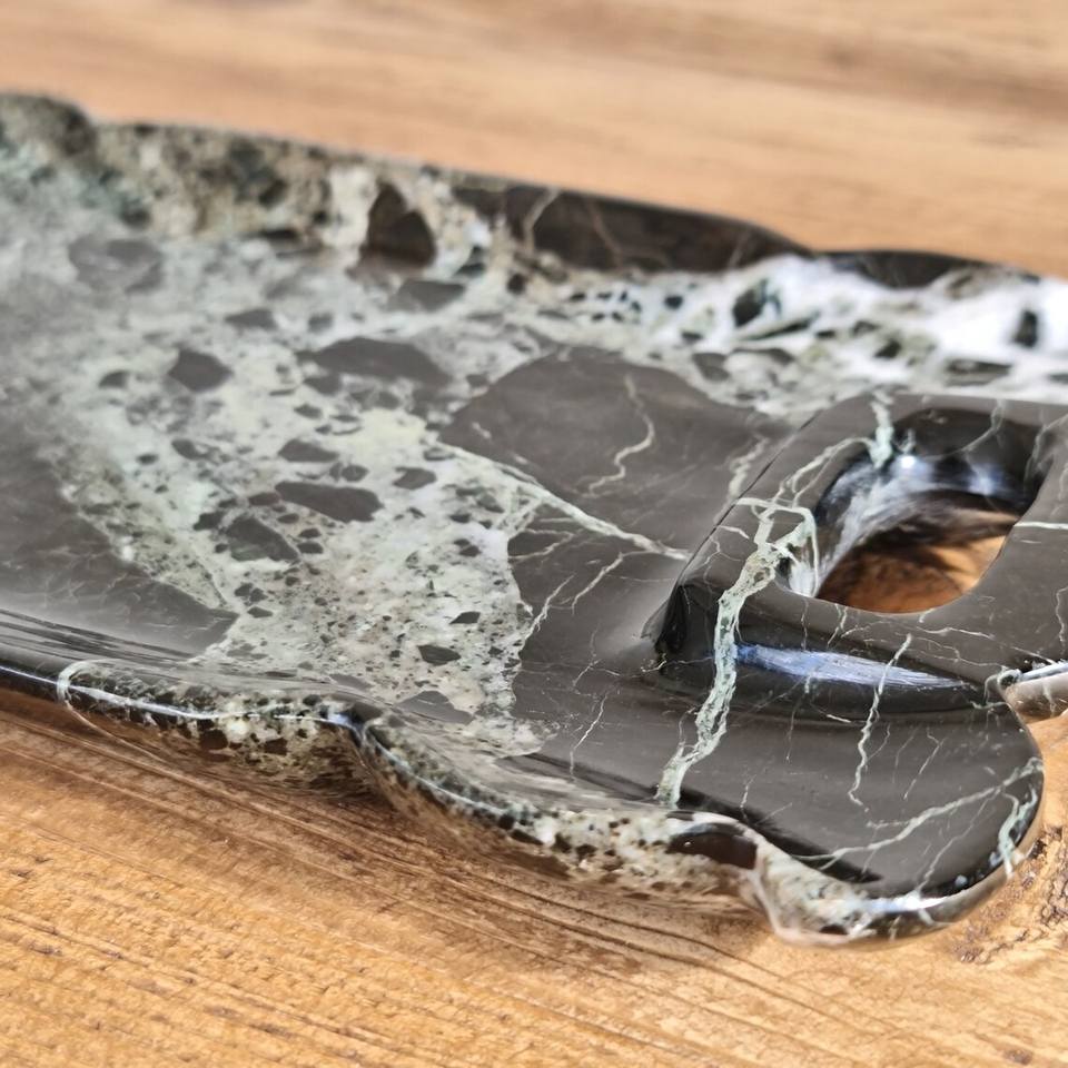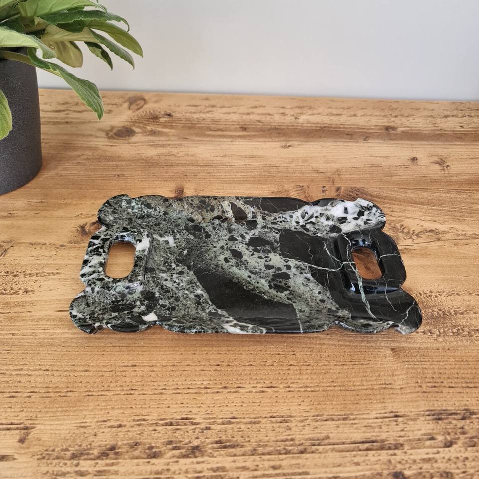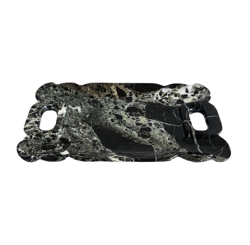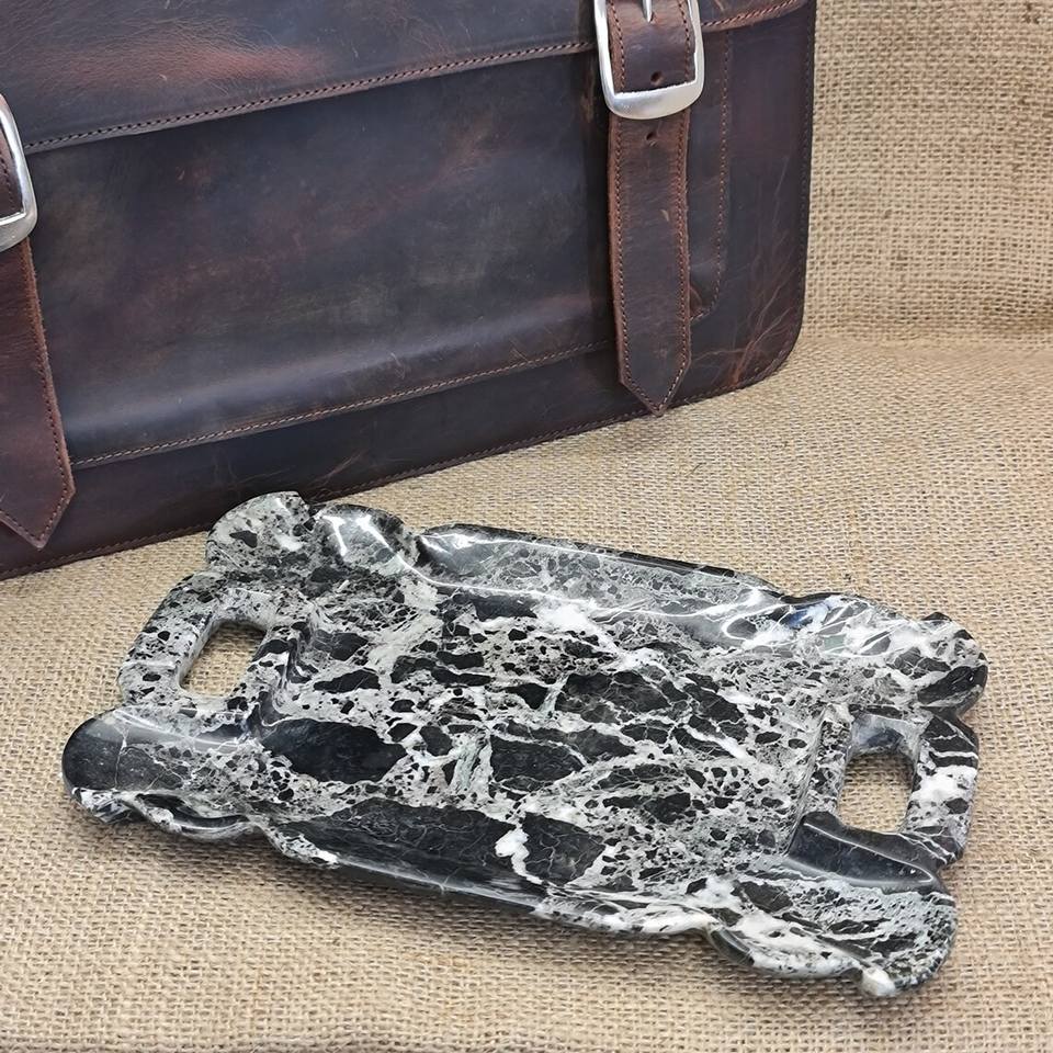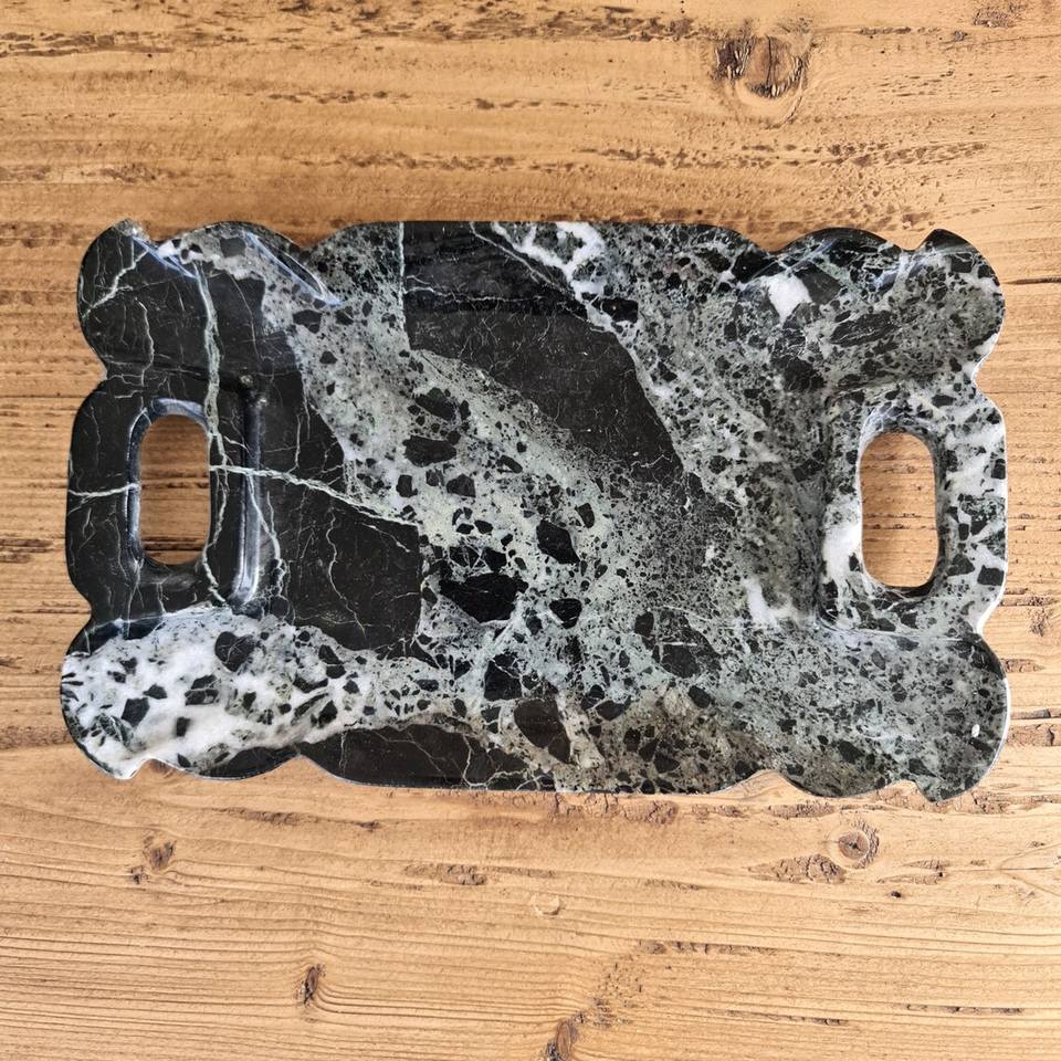 ถาดเสิร์ฟอาหารรูปสี่เหลี่ยมผืนผ้าลายหินอ่อนสีดำลายม้าลาย ขอบหยัก ดีไซน์ทันสมัย ทนไฟ ทำจากหินธรรมชาติ สำหรับห้องครัว ห้องรับประทานอาหาร หรูหราสำหรับบ้าน