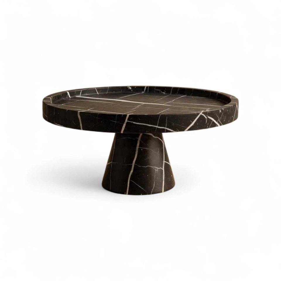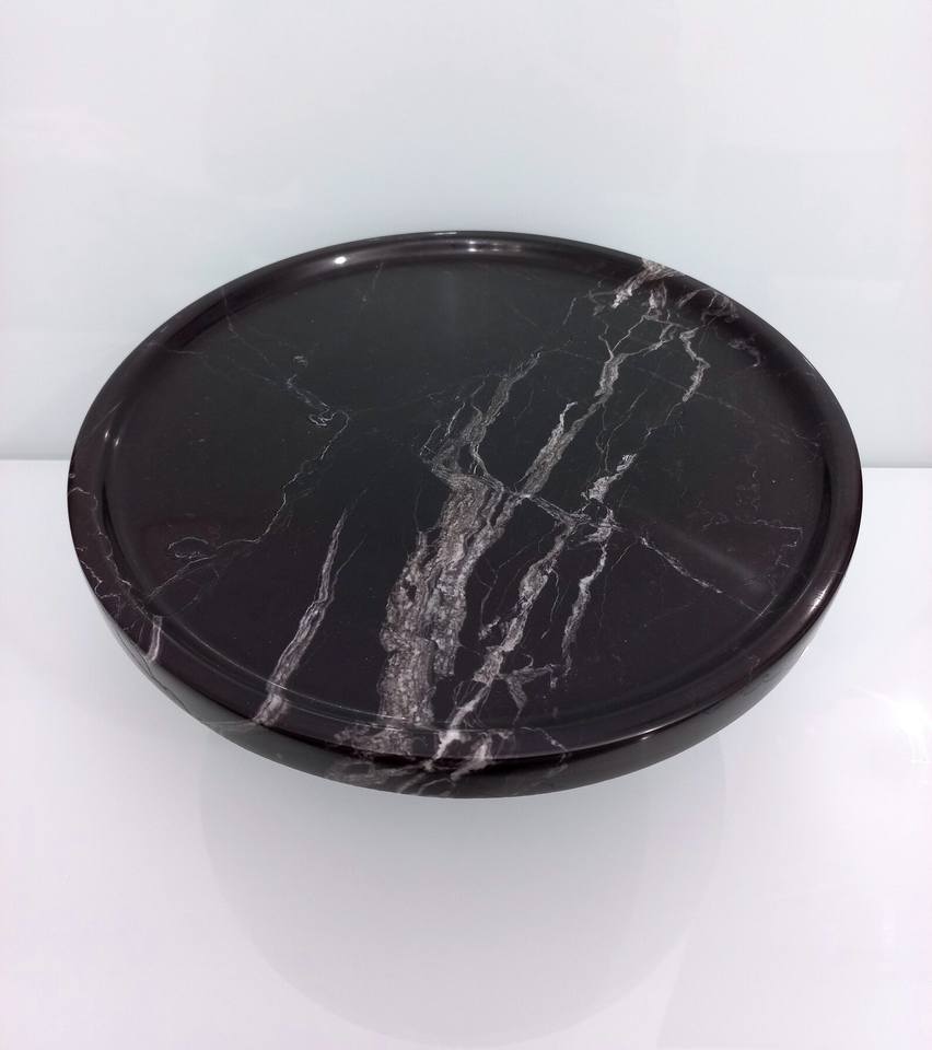 ถาดเสิร์ฟหินอ่อนลายม้าลายสีดำทรงกลม ดีไซน์ทันสมัย ปลอดภัย ตกแต่งบ้านอย่างหรูหรา