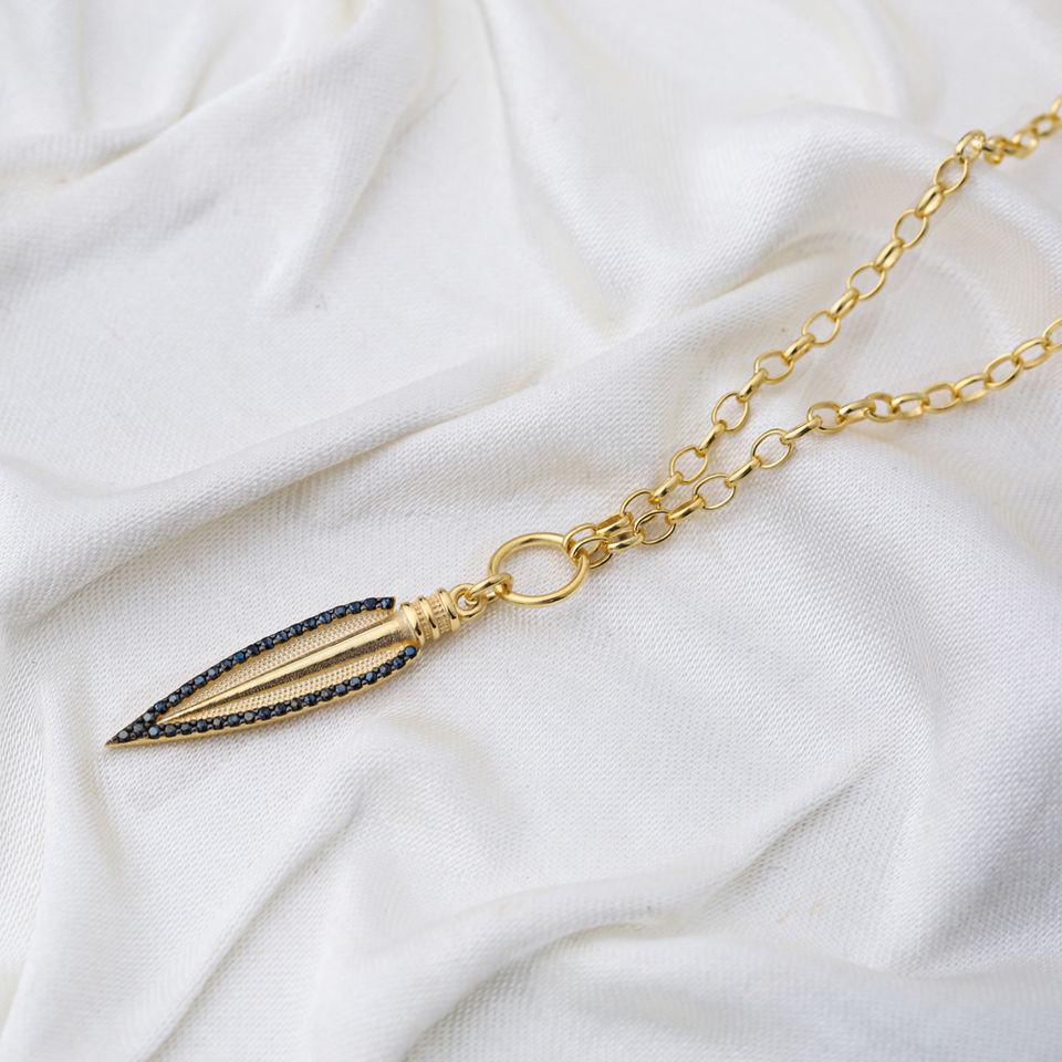 สีดำเพทายหอกเสน่ห์สายจี้สร้อยคอตุรกี925สเตอร์ลิงเครื่องประดับเงินสำหรับผู้หญิง