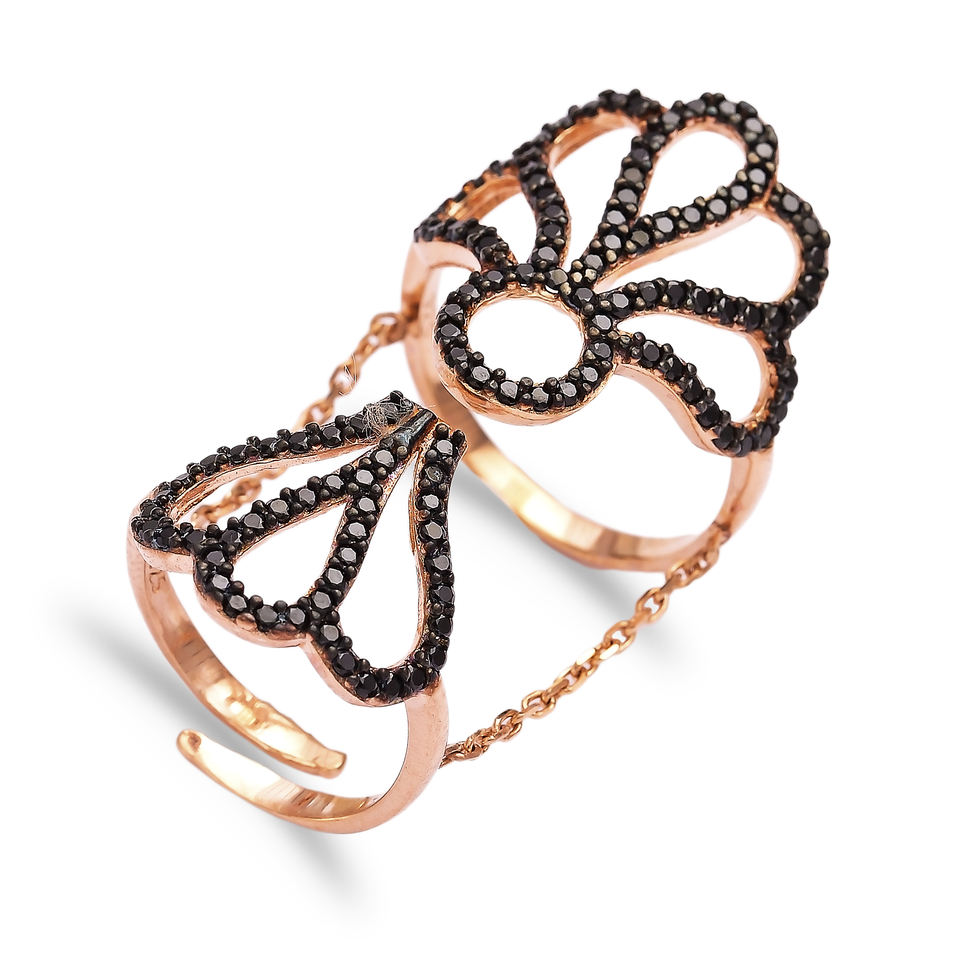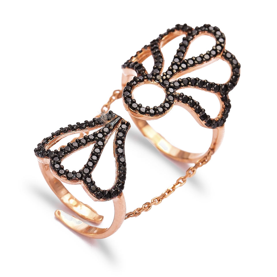 สีดำเพทายหิน Dainty รูปร่างที่ไม่ซ้ำกันห่วงโซ่คู่เงินสองแหวนตุรกีขายส่งเครื่องประดับในแบบฉบับ