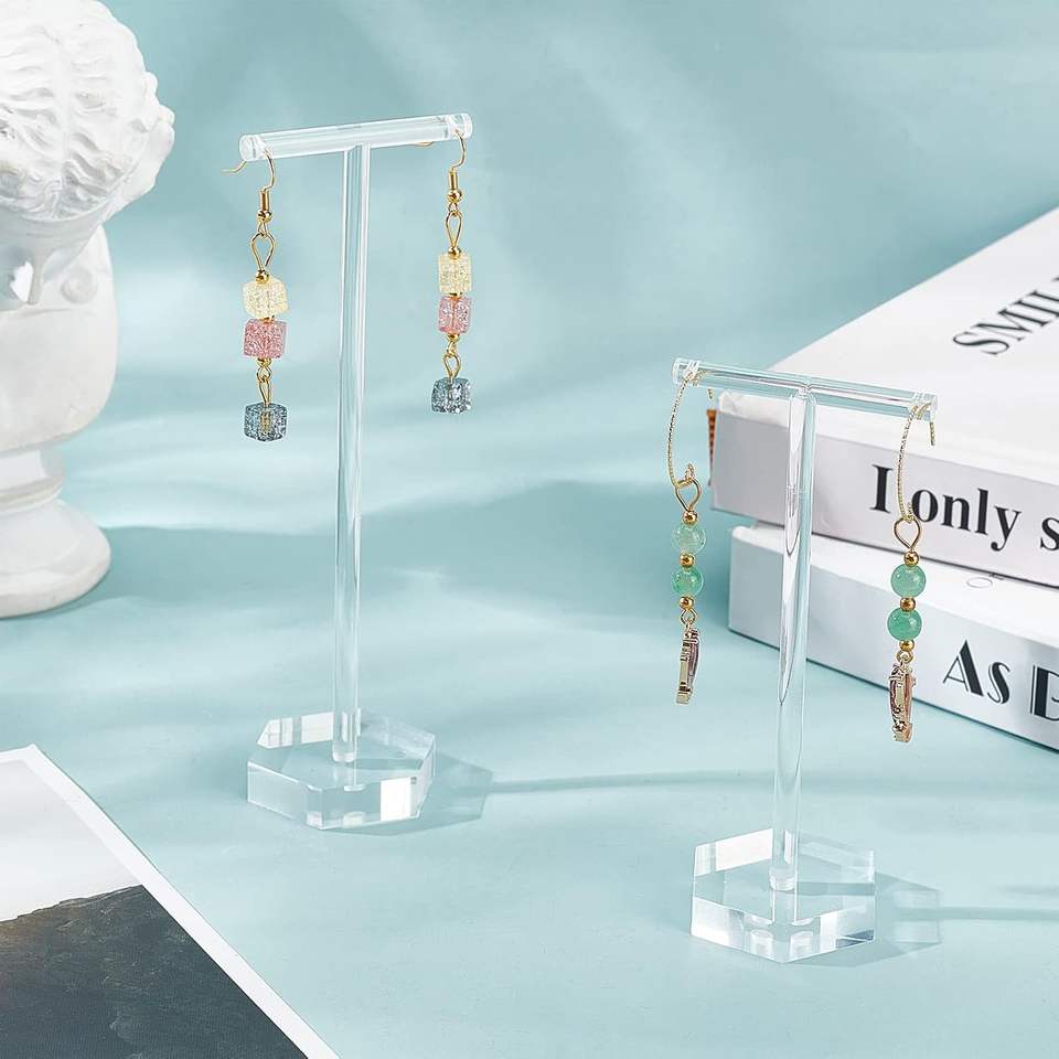 ชั้นวางต่างหูอะคริลิคสีดำแบบถอดออกได้แท่นวางเครื่องประดับร้านค้าแสดงอุปกรณ์สำหรับถ่ายภาพต่างหูโปร่งใส