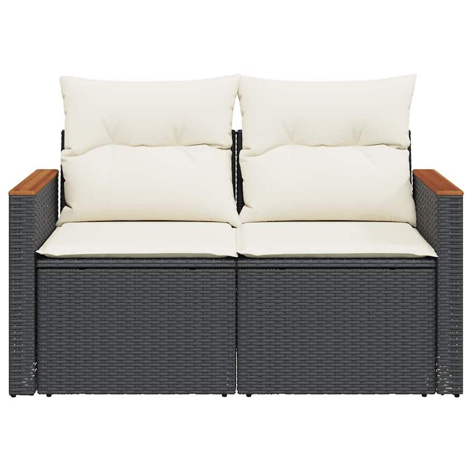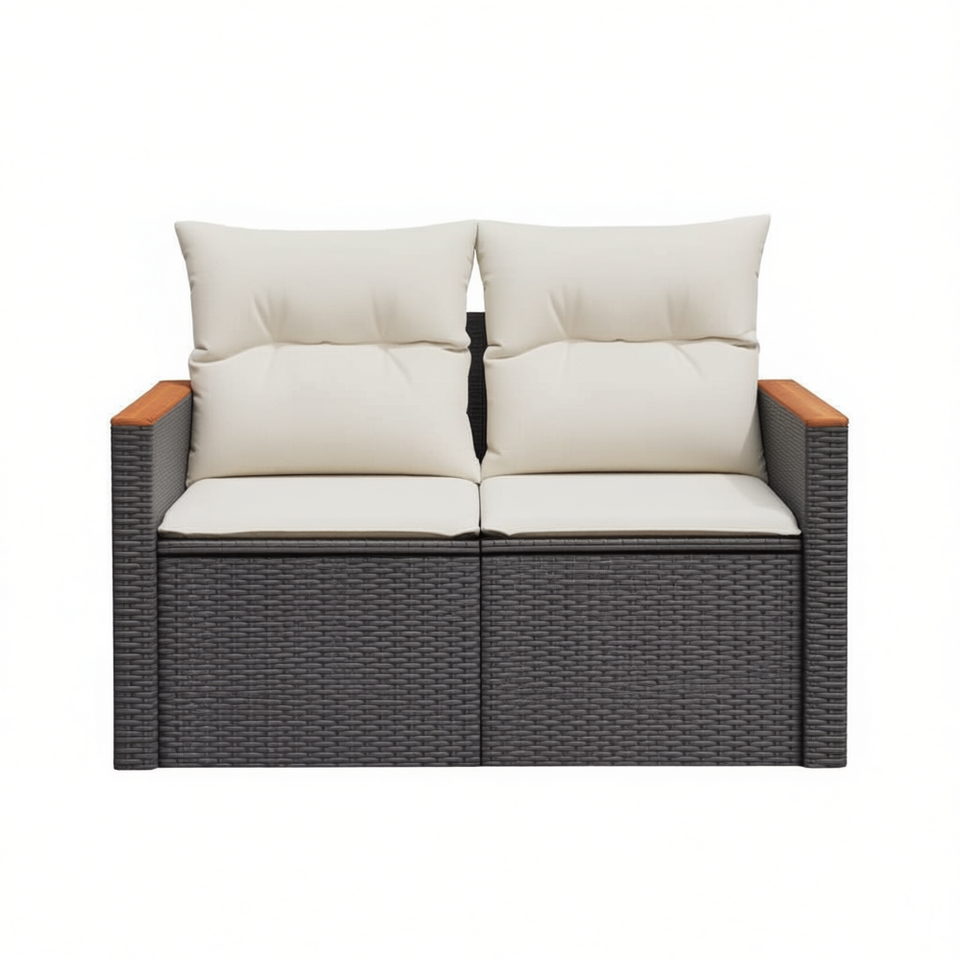 โซฟาสวนสองที่นั่ง เฟอร์นิเจอร์หวายกลางแจ้ง พร้อมเบาะสีครีม กันน้ำ ดีไซน์ร่วมสมัย