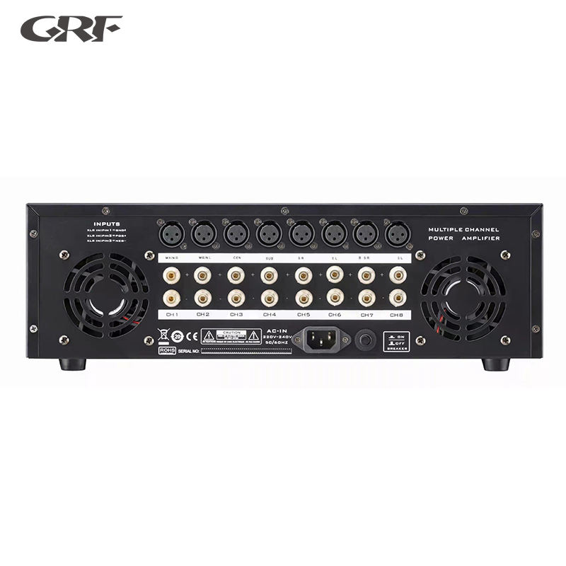 เครื่องขยายเสียง8ช่องสัญญาณสำหรับภาพยนตร์ซับวูฟเฟอร์600วัตต์สีดำและสีทอง