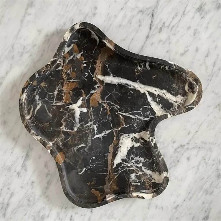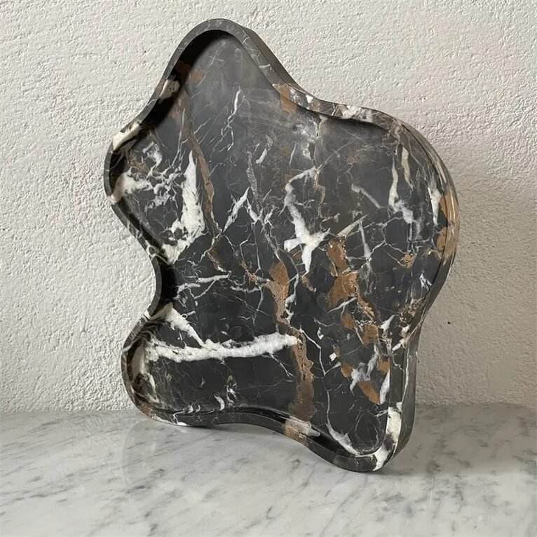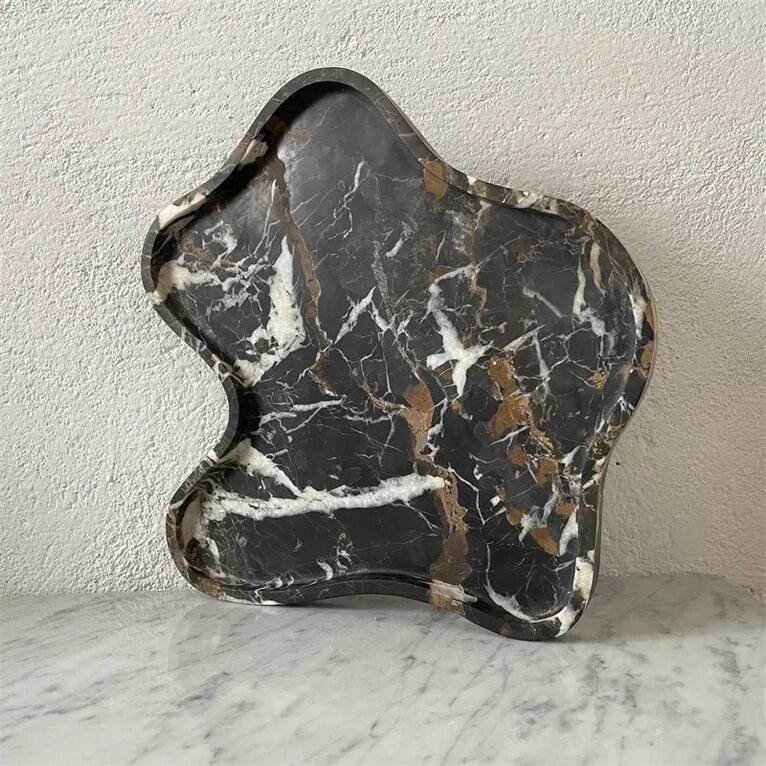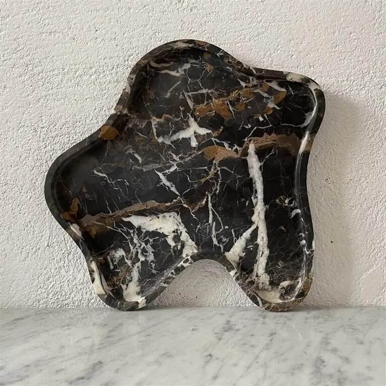 ชามหินอ่อนสีดำทอง ดีไซน์ไม่สมมาตรสุดหรู งานแฮนด์เมด ของตกแต่งบ้าน ชามเสิร์ฟผลไม้ สไตล์โมเดิร์น