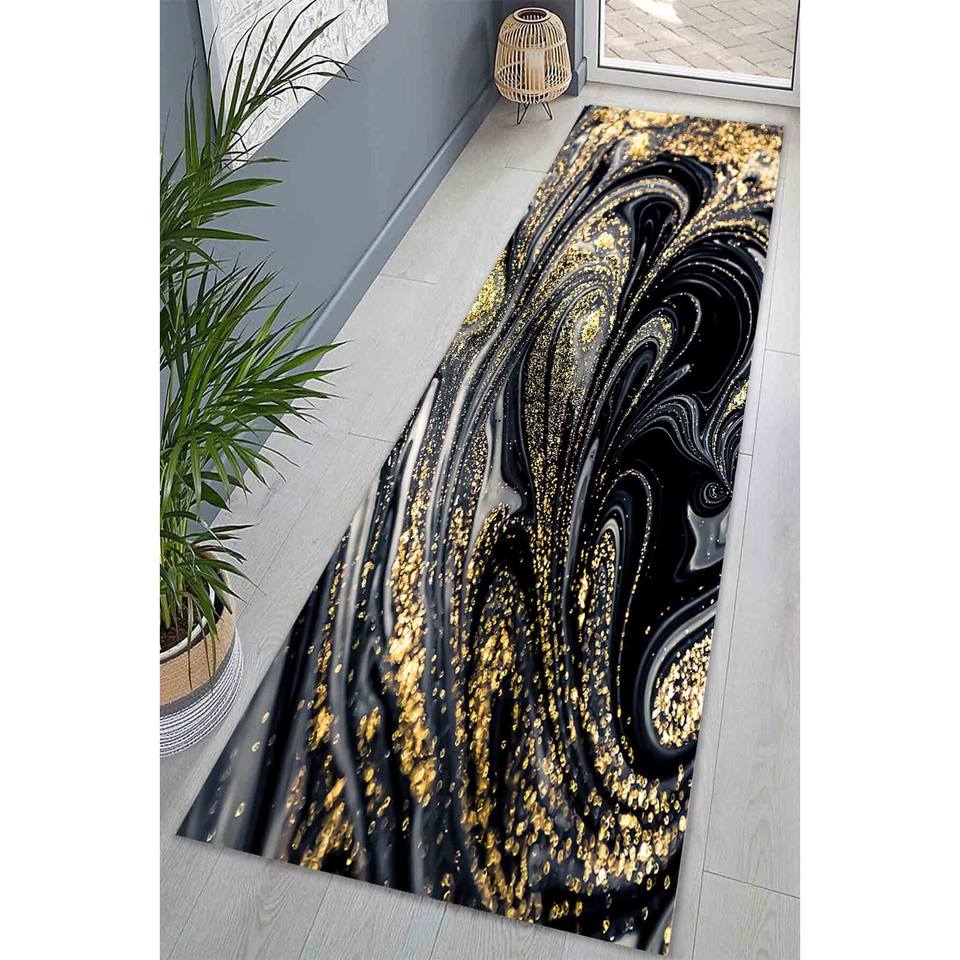 พรมหินอ่อนสีดำและสีทอง: การออกแบบนามธรรมที่ทันสมัยพรมบางเฉียบ