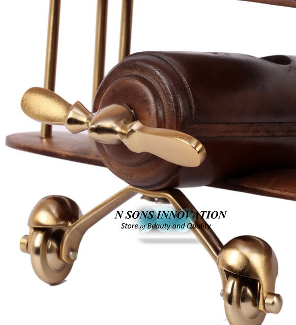 ตกแต่งโต๊ะโลหะแนววินเทจสีดำและสีทองพร้อมใบพัดหมุนและล้อกลิ้งที่ได้รับแรงบันดาลใจจากการบินอย่างสง่างาม