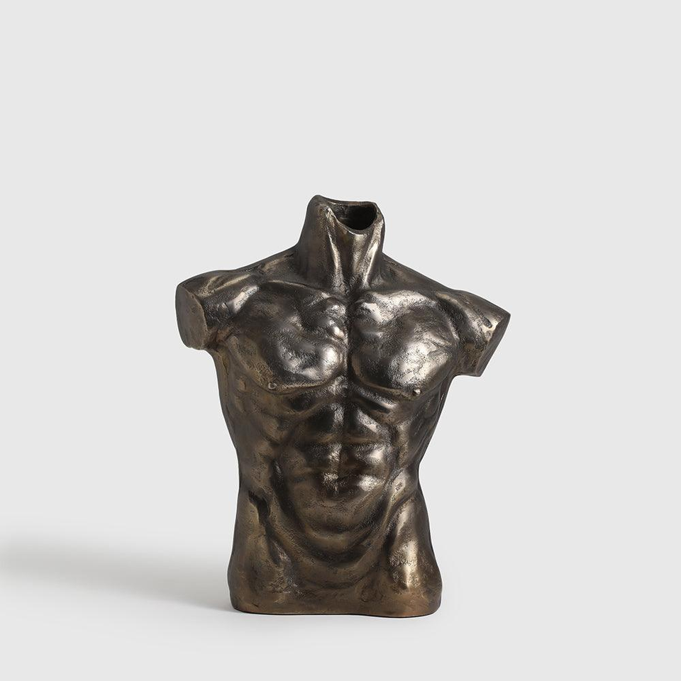 แจกันดอกไม้โลหะสีดำและสีทองรูปทรงมนุษย์คุณภาพสูงตกแต่งด้วยขนาด33x16x31ซม.