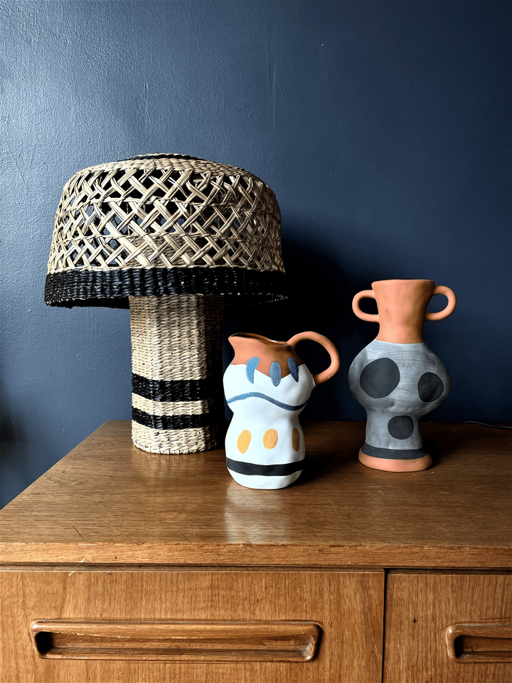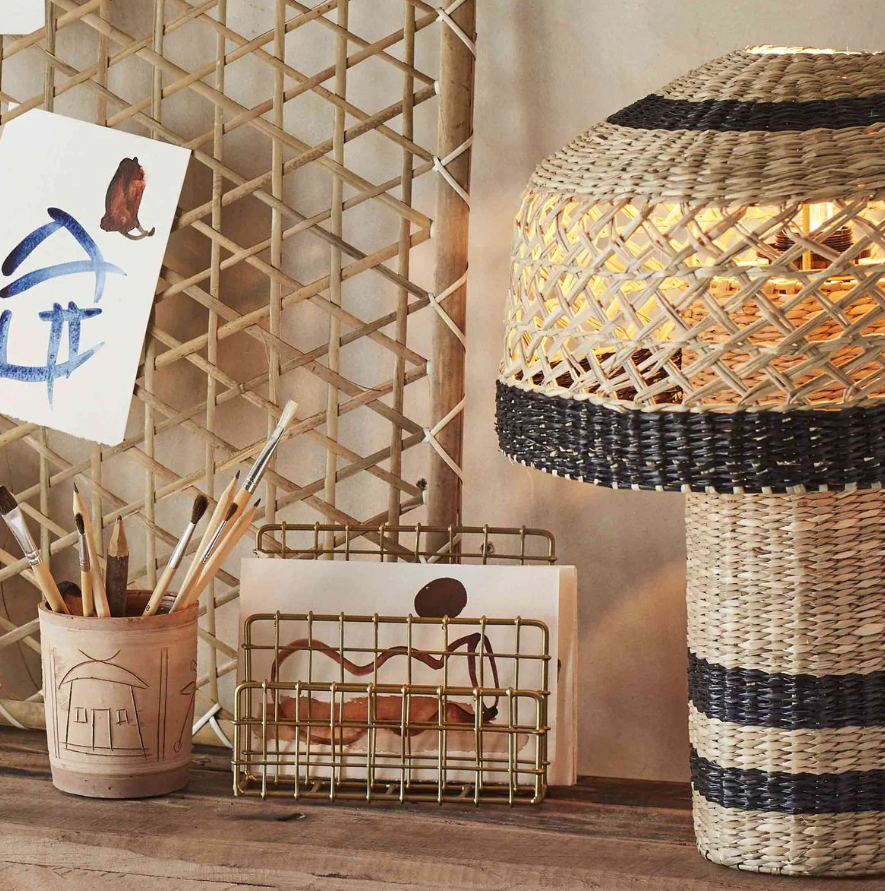 โคมไฟตั้งโต๊ะจากหญ้าทะเลสีดำและธรรมชาติ