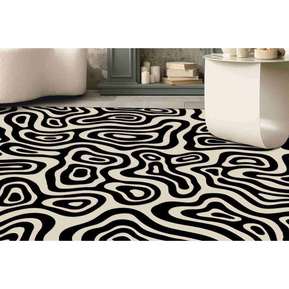 พรมลายขาวดำแบบนามธรรม: ลายเรียบง่ายทันสมัย พรมบางแบบไม่ทอ