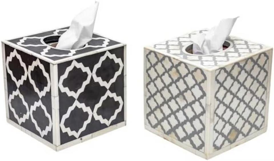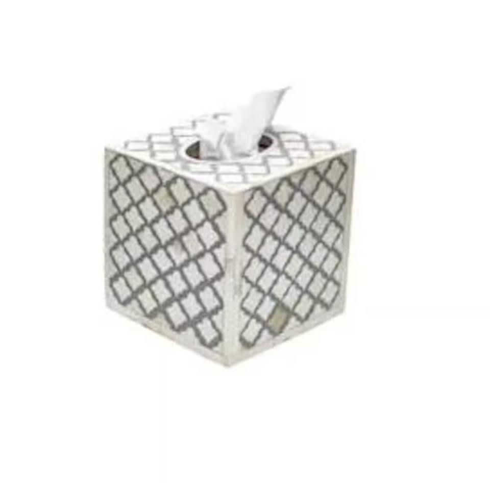 กล่องใส่กระดาษทิชชูทรงลูกบาศก์ลายฝังกระดูกสีดำและสีขาว เหมาะสำหรับใช้ในบ้าน สำนักงาน ห้องน้ำ และตกแต่งภายในสไตล์ร่วมสมัย จากอินเดีย