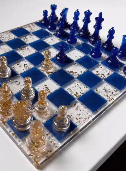ชุดหมากรุกสีดำและสีขาว ทำจากเรซิ่น พร้อมผิวขัดเงา หมากรุกเรซิ่น หมากรุกสีดำและสีขาว