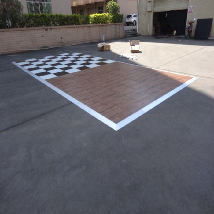กระดานหมากรุกสีดำและสีขาวพื้นเต้นรำงานแต่งงานพื้นพีวีซีสำหรับงานปาร์ตี้