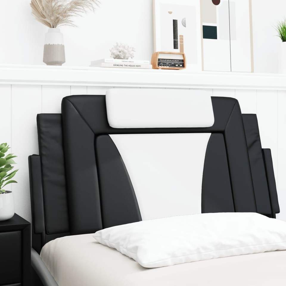 เบาะรองหัวเตียงหนังเทียมสีดำและสีขาว กว้าง 39.4 นิ้ว สำหรับอ่านหนังสือและพักผ่อนบนเตียง