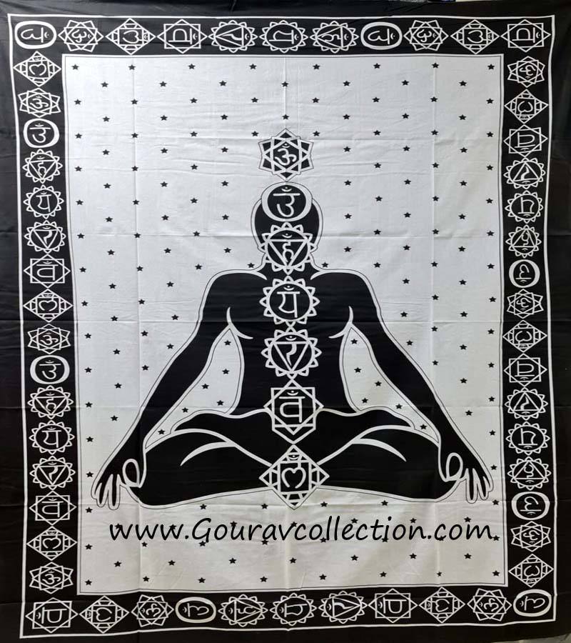 สีดำและสีขาวแนวนอน7 Chakra แขวนผนังพรมผ้าฝ้ายผ้าปูที่นอนขนาดเดียวสำหรับตกแต่งบ้าน GC-TP-194-F